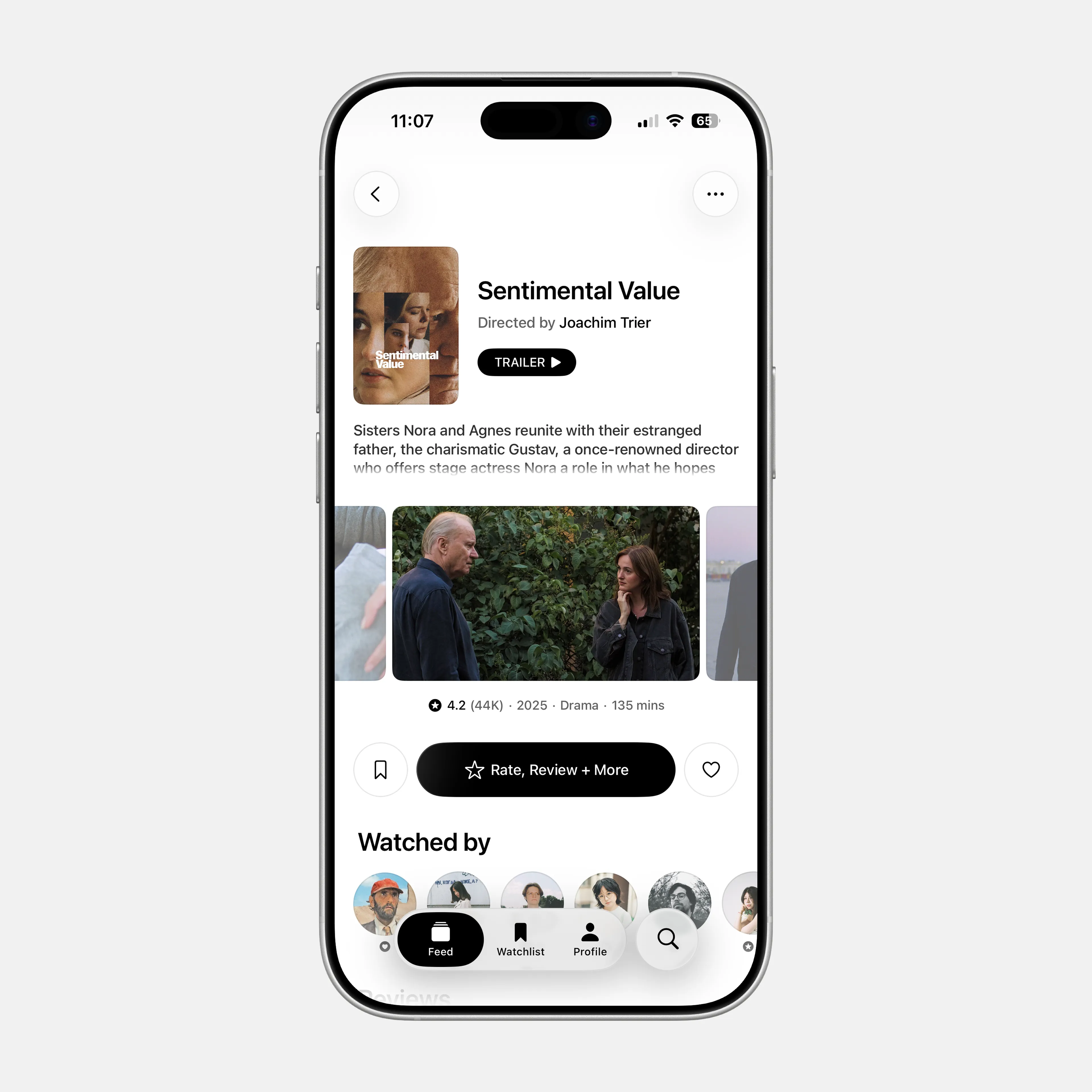 Я вынес лайк и вотчлист по бокам от неё, чтобы убрать лишние барьеры на базовом уровне взаимодействия с фильмом, а саму кнопку сделал более заметной и контрастной.